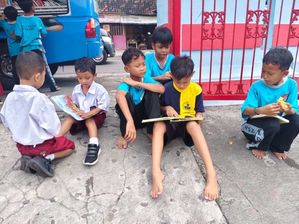 Kegiatan berlangsung dengan suasana yang meriah. Anak-anak berbaris rapi menunggu giliran untuk memilih buku yang ingin mereka baca. Buku-buku yang disediakan sangat beragam, mulai dari cerita bergambar, dongeng anak, buku pengetahuan umum, hingga keterampilan sederhana. Hal ini membuat para siswa bebas memilih bacaan sesuai minat mereka.
